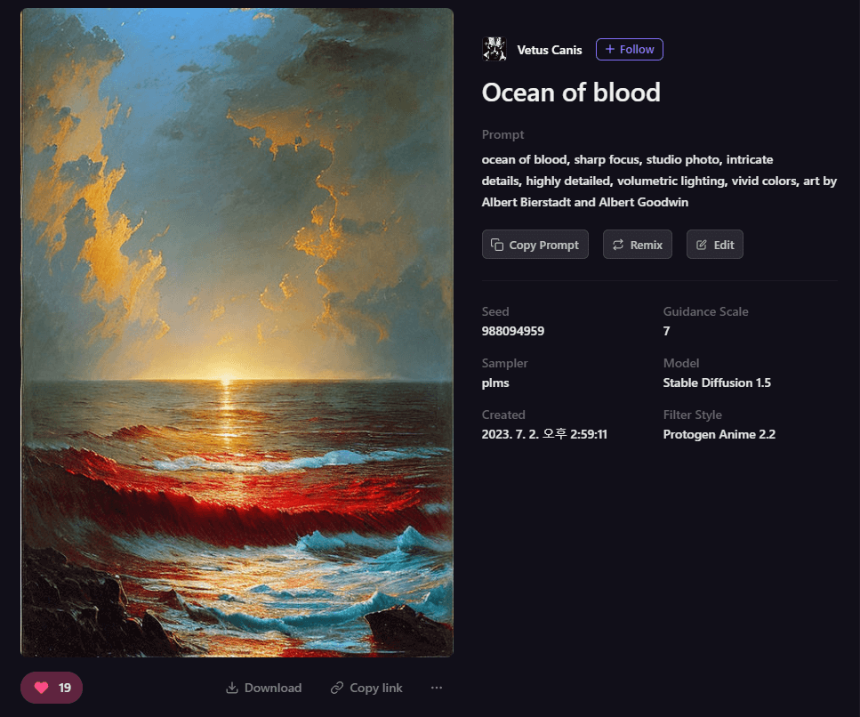 이번에 분석하려는 그림에는 '붉은 바다'로 제목을 붙여봤습니다.