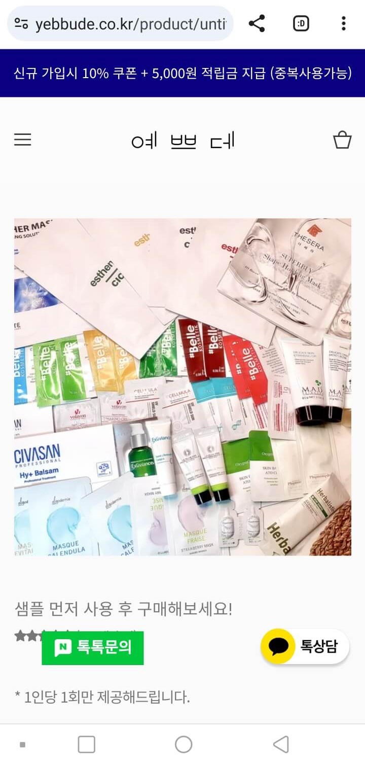 샘플 구입 페이지가 안보일 경우, '톡톡문의'로 문의하면 됩니다.